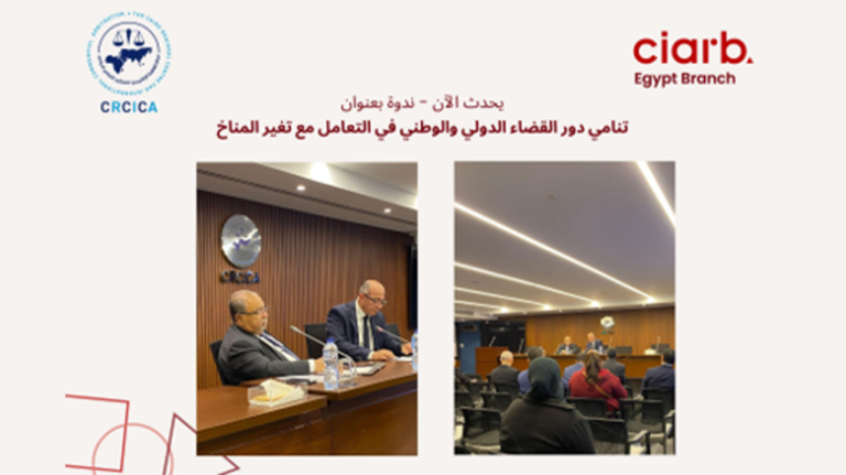يسعد فرع مصر للمجمع الملكي البريطاني للمحكمين المعتمدين Ciarb دعوتكم للمشاركة في الندوة التي ينظمها الفرع بالتعاون مع مركز القاهرة الإقليمي للتحكيم التجاري الدولي (مقر الفرع) بعنوان: “تنامي دور القضاء الدولي والوطني في التعامل مع تغير المناخ” وذلك يوم الأربعاء ١٥ يناير ٢٠٢٥ في الساعة الخامسة مساء بقاعة المؤتمرات بالمركز (الدور الاول).