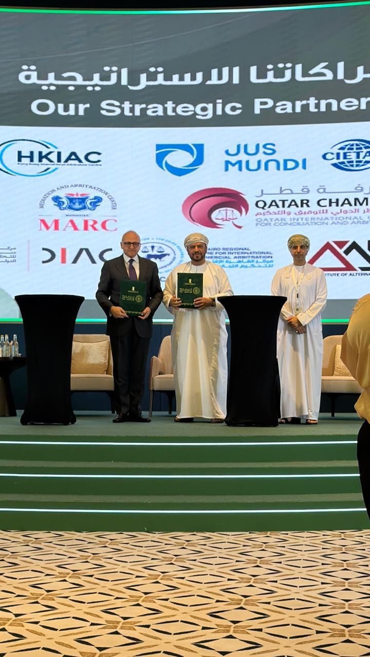 4 December 2025, Muscat – The Cairo Regional Centre for International Commercial Arbitration (CRCICA) is pleased to announce the signing of a Memorandum of Understanding (MoU) with the Oman Commercial Arbitration Centre. The MoU was signed during the Muscat Arbitration Days, by Prof. Dr. Mohamed Sameh Amr, esteemed Member of CRCICA’s Board of Trustees, on behalf of CRCICA’s Director, Prof. Dr. Ismail Selim. This strategic partnership underscores the strong commitment of both institutions to enhancing arbitration practices and strengthening regional dispute-resolution frameworks.
