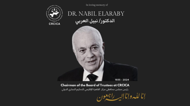 It is with profound sorrow that the Cairo Regional Centre for International Commercial Arbitration (CRCICA) mourns the loss of H.E. Dr. Nabil Elaraby, Chairman of the CRCICA Board of Trustees; former Director of CRCICA; former Minister of Foreign Affairs of Egypt; and former Secretary-General of the League of Arab States, who passed away on Monday 26 August 2024.