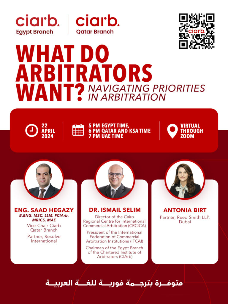 An enlightening webinar organized jointly by the Chartered Institute of Arbitrators (Egypt Branch) and CIArb Qatar and QFC branch.